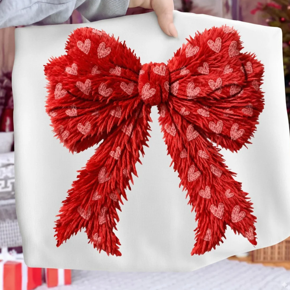 White Valentines Red Bow With Hearts Sweatshirt/Tee