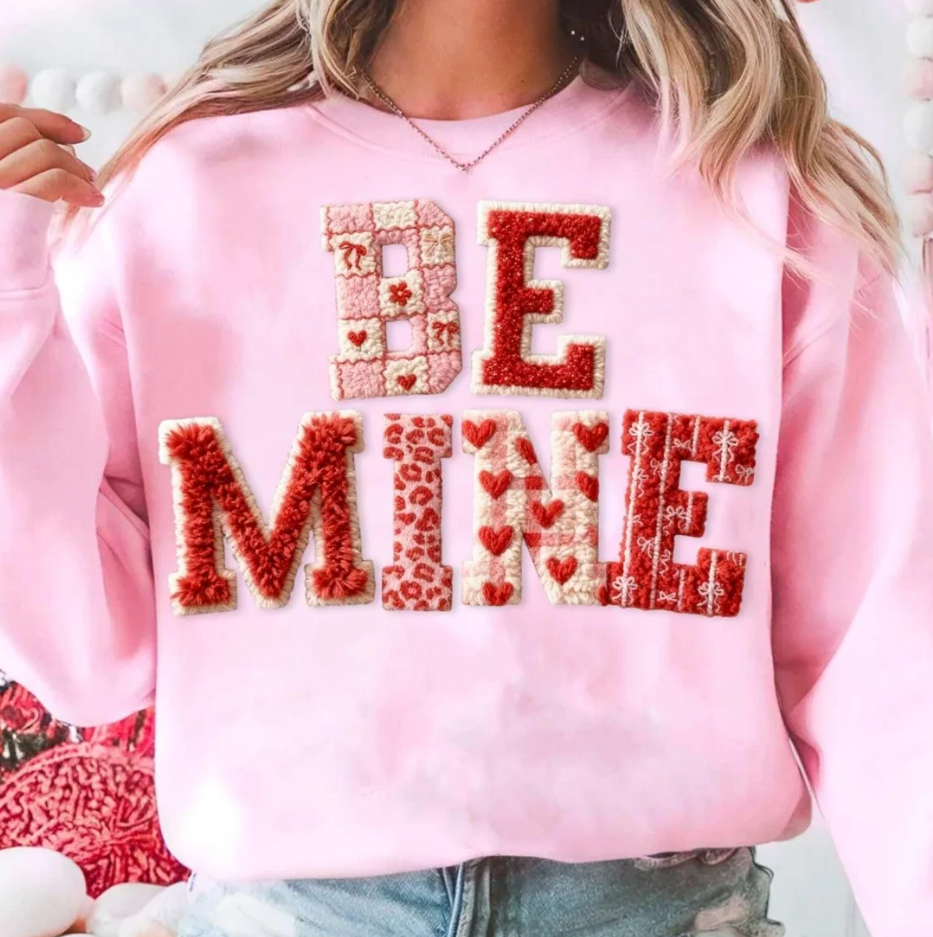 Light Pink "Be Mine" Patchwork Vibes Sweatshirt/Tee