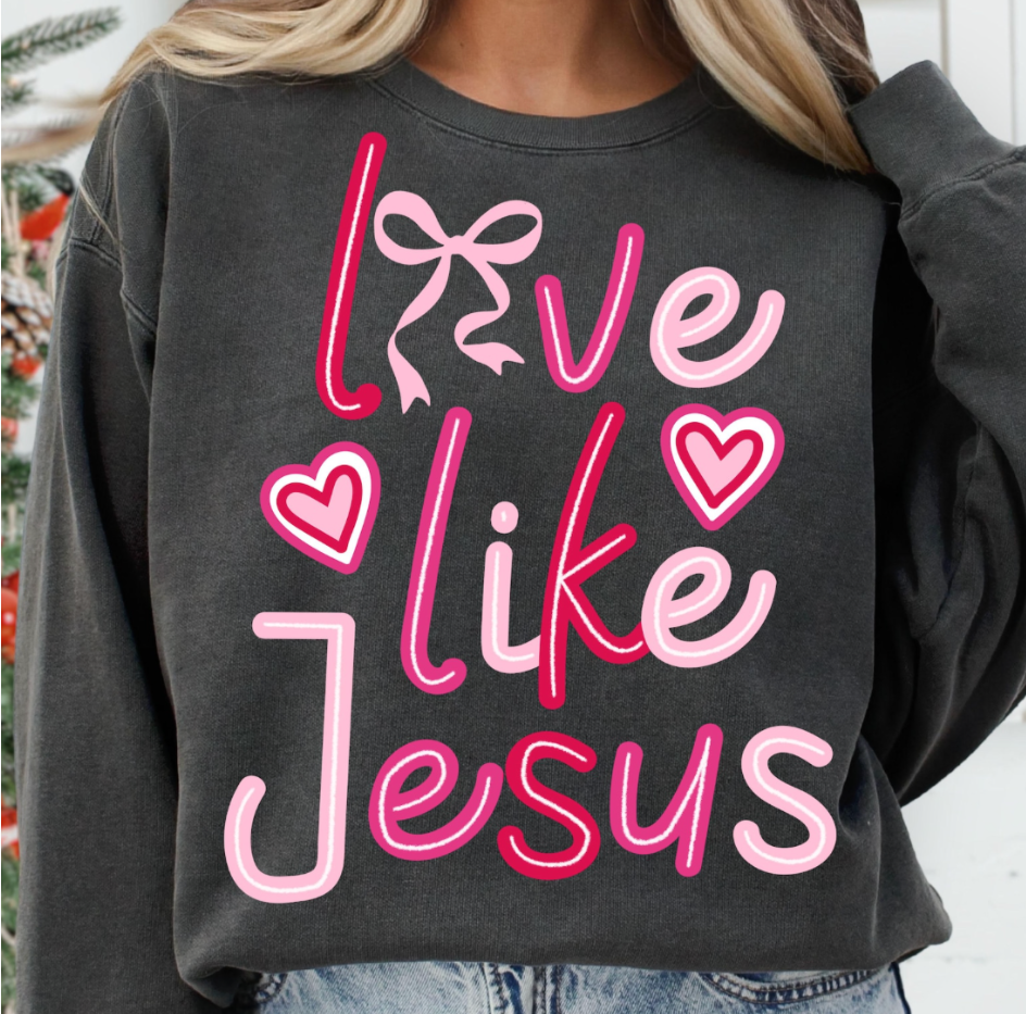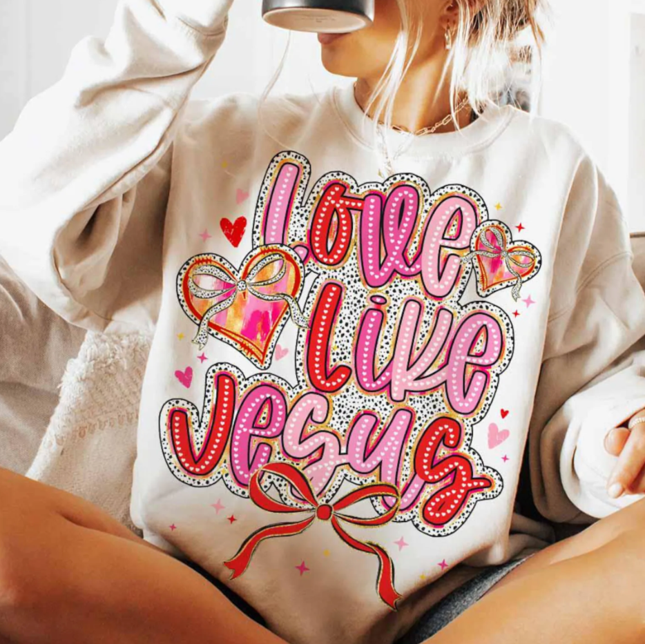 White Valentines Coquette "Love Like Jesus" Sweatshirt/Tee