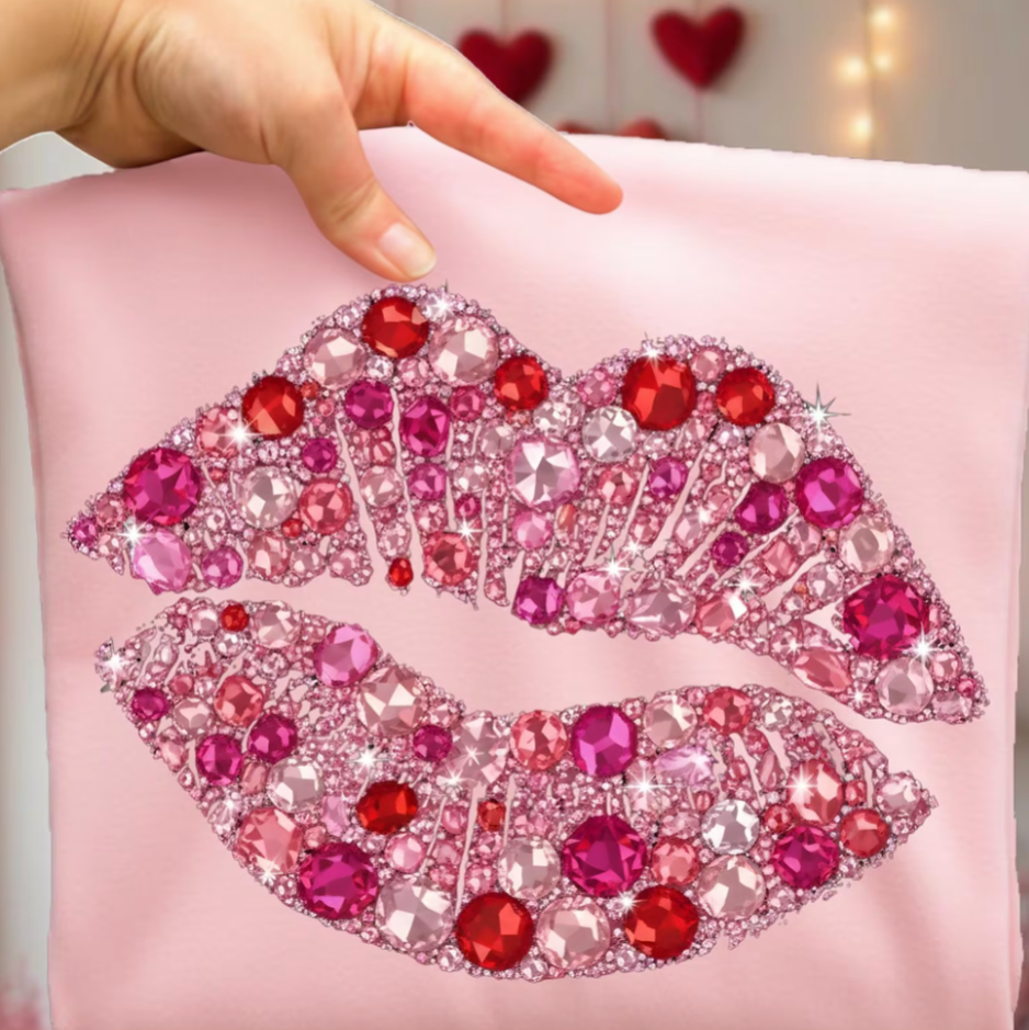Light Pink Valentines Bling Lips Sweatshirt/Tee