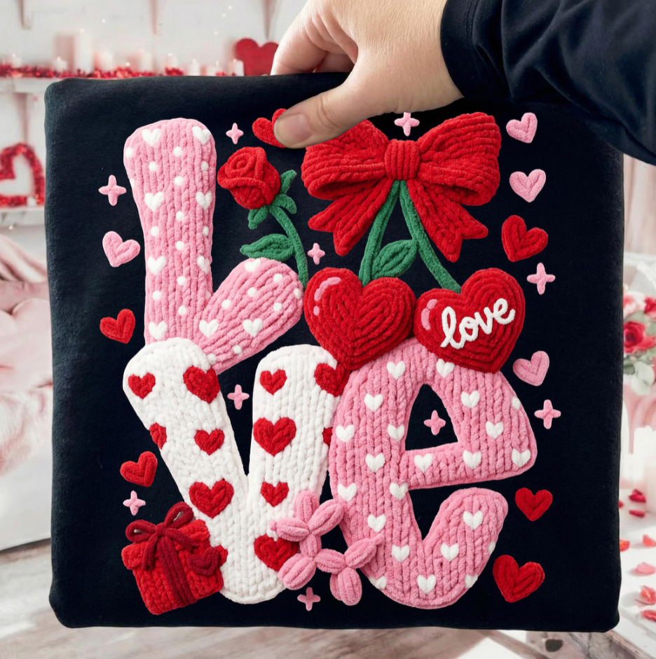 Black Valentines Faux Knit "Love" Sweatshirt/Tee
