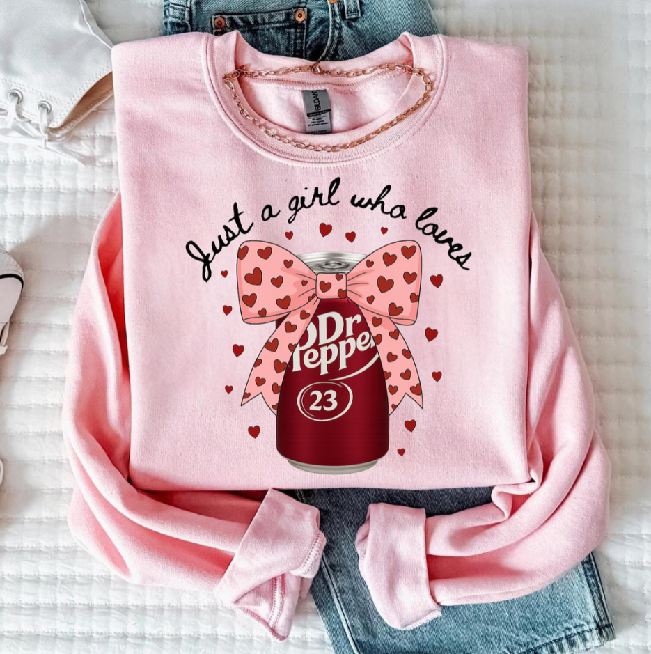 Light Pink Valentines "Just A Girl" Soda Sweatshirt/Tee