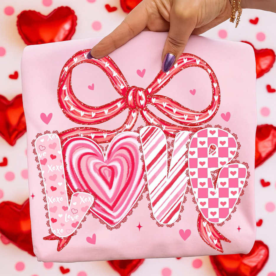 Light Pink Valentines Love Bow Sweatshirt/Tee