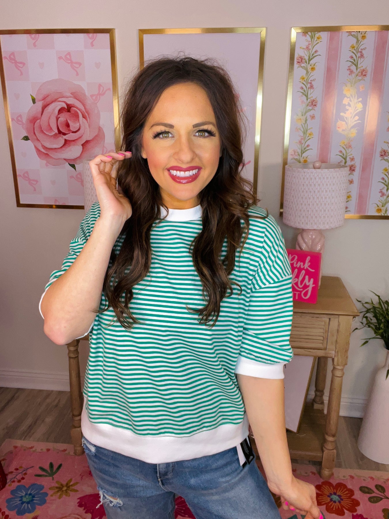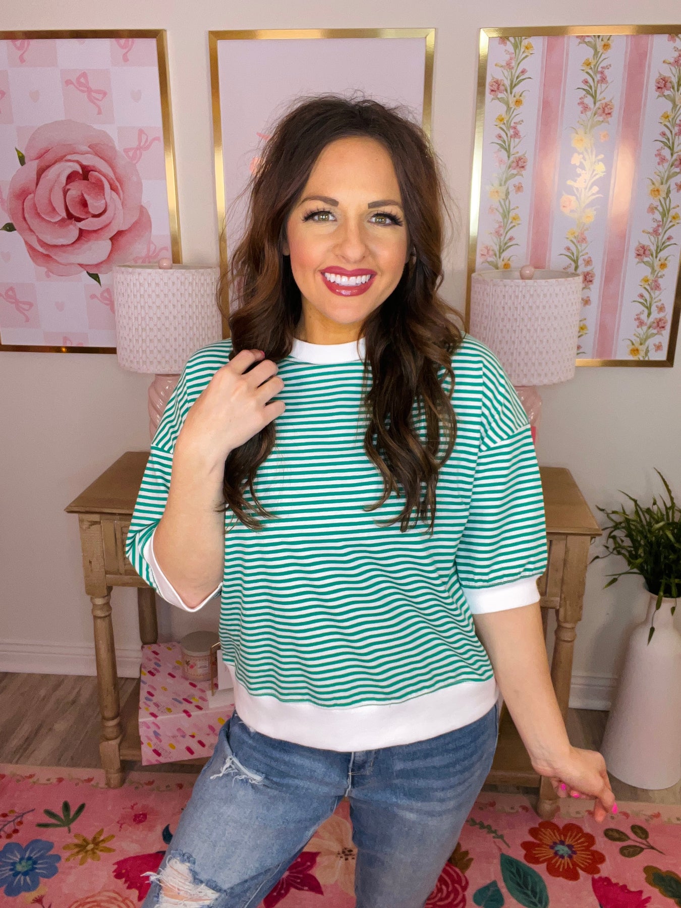 STRIPED CONTRAST TRIM BANDED BOTTOM TOP
