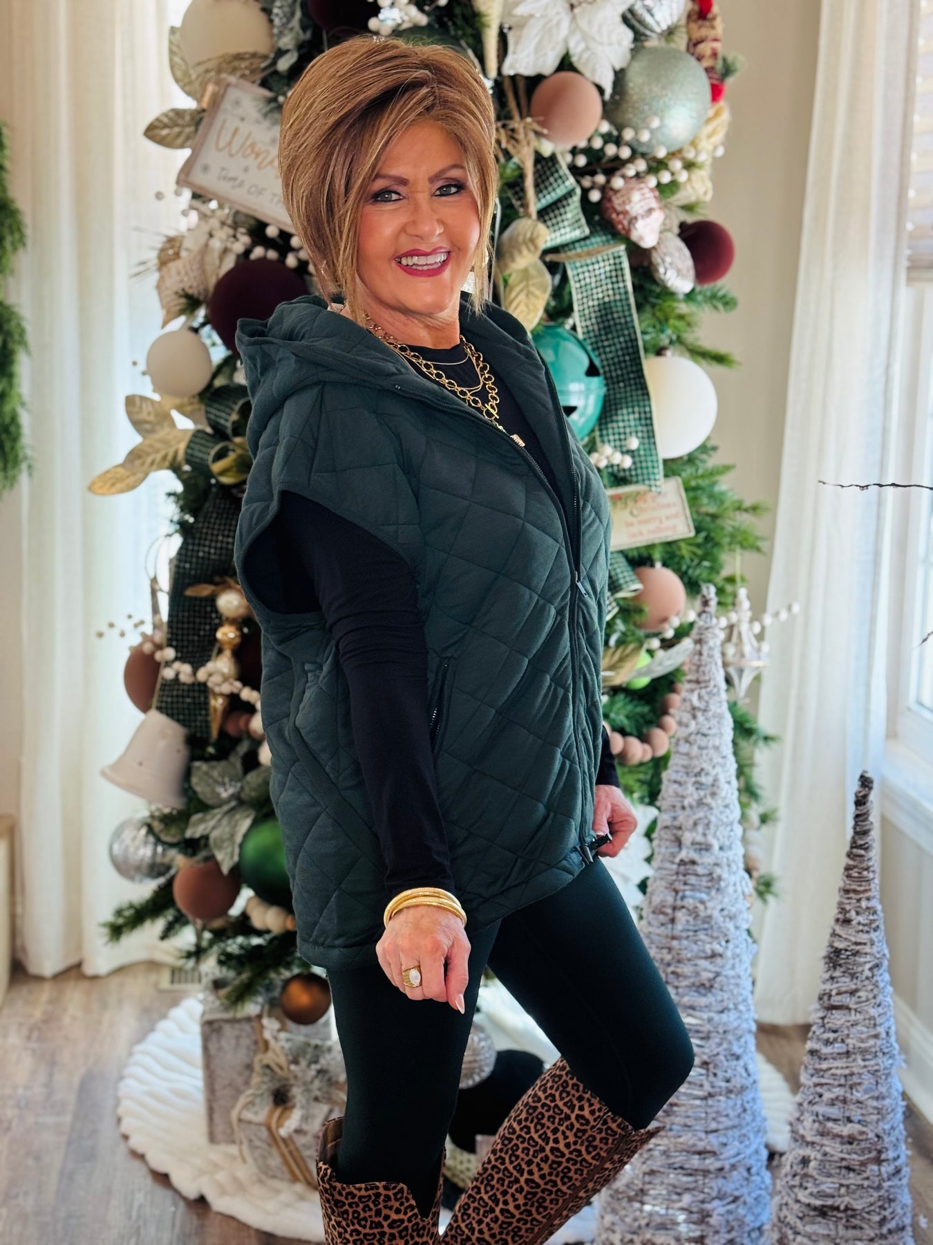 Stay cozy in style with this pillowy-soft quilted sleeveless hoodie vest. Designed with a relaxed, oversized fit, it features a cinched hem with adjustable stoppers for a customizable silhouette. Perfect for layering, this piece blends comfort and functionality with an effortlessly cool look.