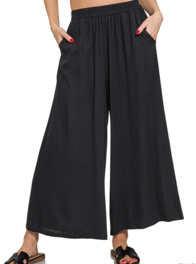 WOVEN ELASTIC BAND PANTS WITH POCKET