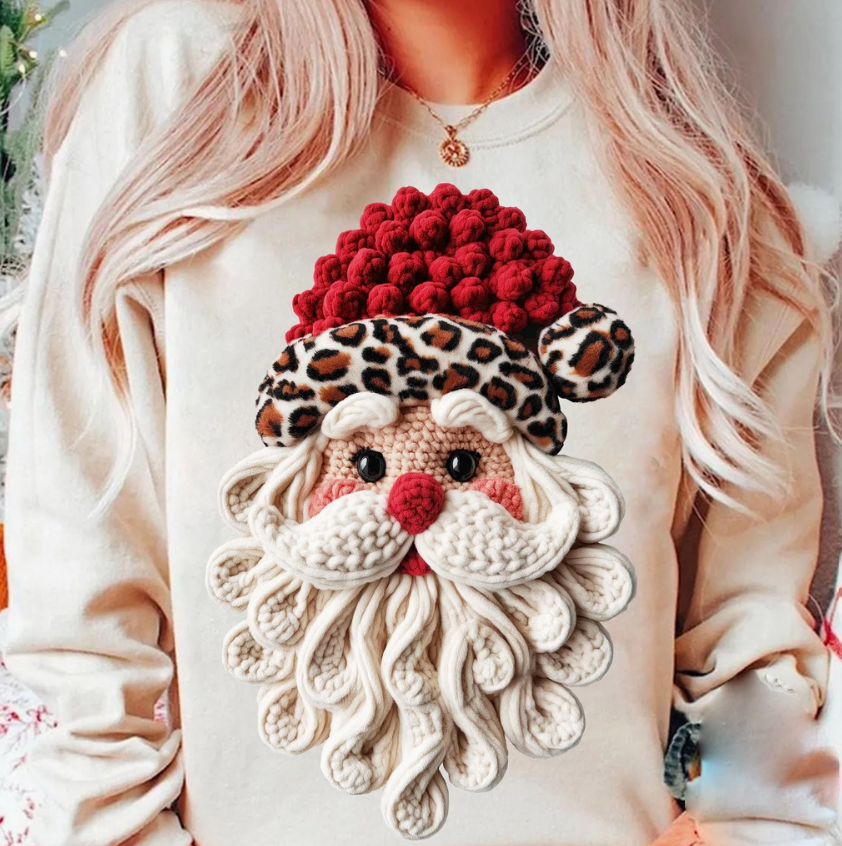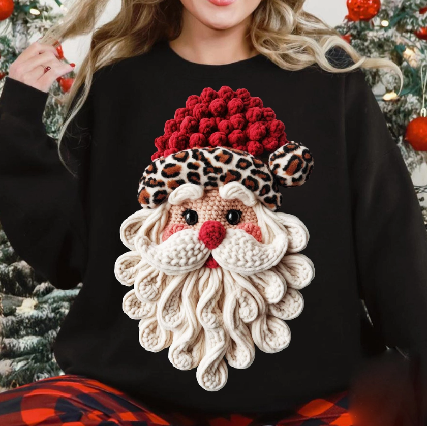 Faux Crochet Vintage Santa Sweatshirt - 3 Color Options