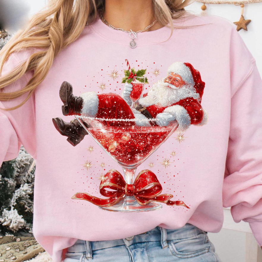 Retro Santa Claus Martini Sweatshirt - 4 Color Options