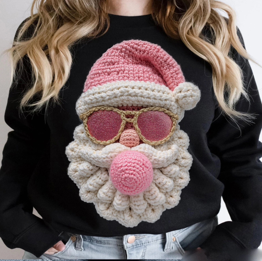 Faux Crochet Bubblegum Santa Sweatshirt - 4 Color Options