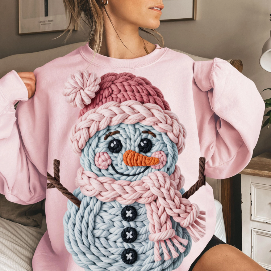 Faux Yarn Crochet Snowman Sweatshirt - 2 Color Options