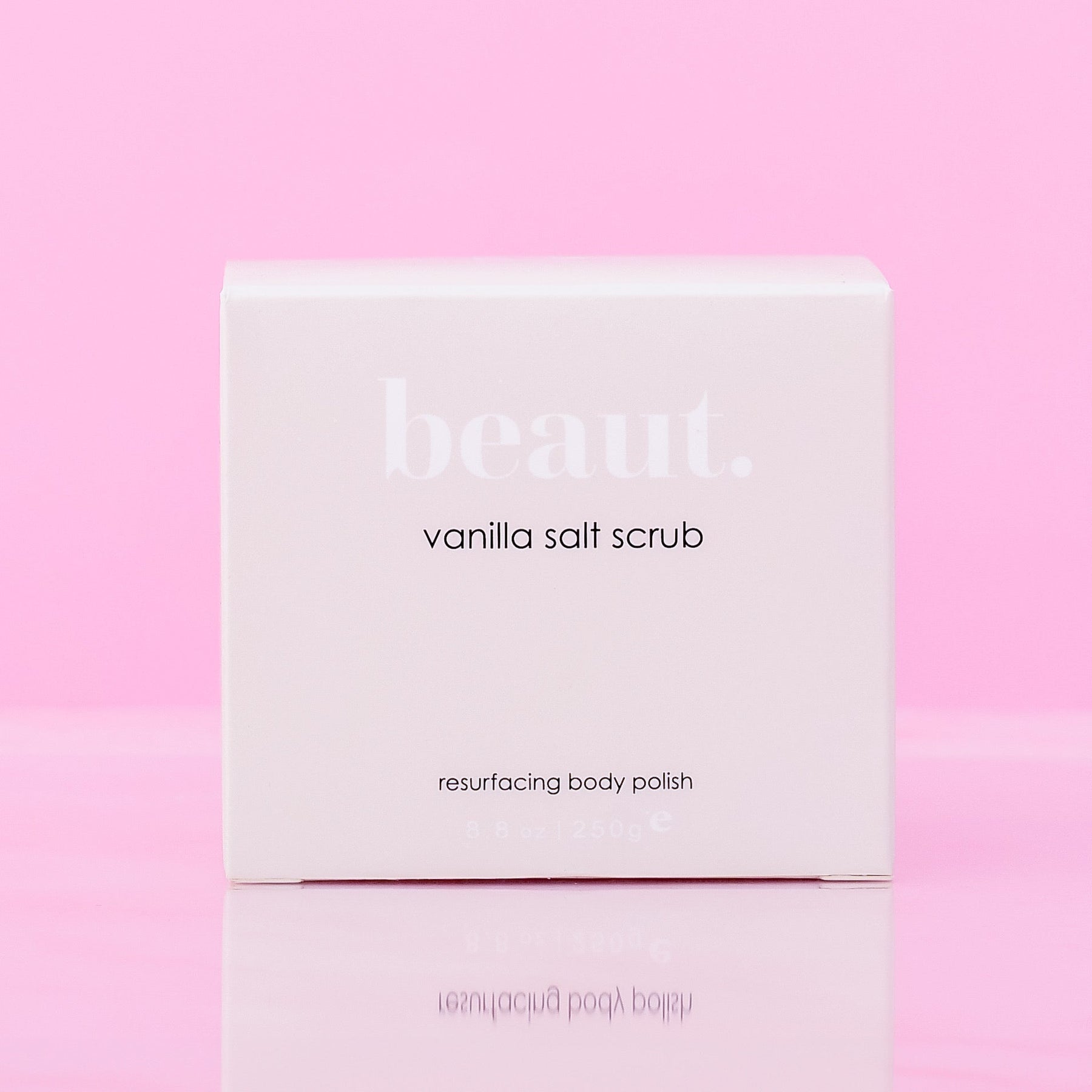 Made with a blend of mineral rich sea salt to gently exfoliate dead skin, texture, and visibly improve your skins complexion and feel. Together with rich, moisturizers, our salt scrub reveals smooth and glow skin after each use.